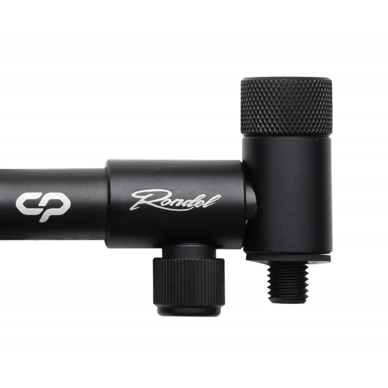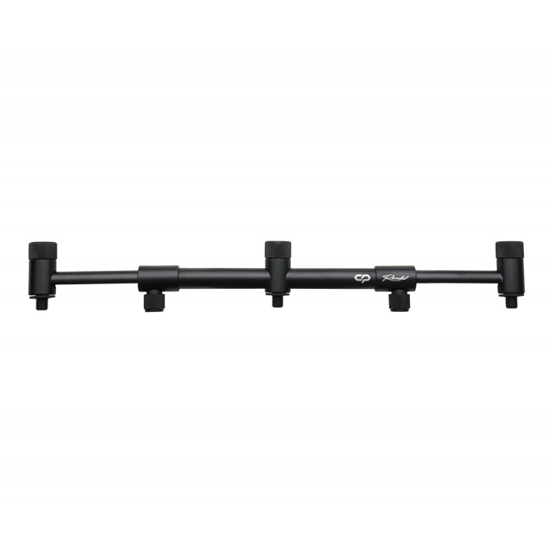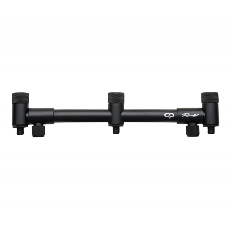 Carp Pro Rondel 3-Rod Adjustable Buzz Bar 10-14" – телескопический буз-бар на 3 удилища, который изготовлен из оксидированного алюминия, благодаря чему отличается лёгкостью, высокой прочностью и стильным черным дизайном, не дающим бликов. Для фиксации выбранного расстояния между удилищами (ширины) буз-бар Carp Pro Rondel 3-Rod Adjustable Buzz Bar оснащён надёжными винтовыми зажимами. Причём конструкция фиксирующих телескопическое соединение винтов исключает их полное выкручивание и утерю. Имеется возможность установки буз-бара как на один, так и на два банкстика, для чего на нем предусмотрены стандартные резьбовые соединения. Рабочая длина этой модели телескопического буз-бара Carp Pro Rondel CPRABBO25 составляет 25-35 см.