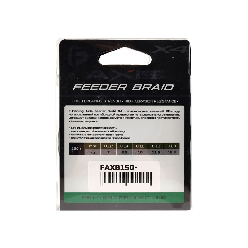 F-FISHING Шнур Axis Braid PE X4 Feeder 150м Grass Camo 0,20мм 12,8кг/26lb