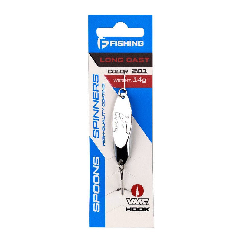 F-FISHING Long Cast – серия колеблющихся блесен типа «Кастмастер», отличающихся более чем демократичной ценой при высоком уровне исполнения. Это идеально сбалансированные приманки, которые характеризуются исключительными полетными качествами, стабильной игрой, способной соблазнить как активного поверхностного хищника на быстром речном течении, так и пассивных обитателей озерных глубин. Long Cast продуктивны при любой проводке: медленно переваливаясь с боку на бок у самого дна, они привлекут щуку, окуня, судака, сома, а резво играя бликами у самой поверхности или в толще воды, соблазнят осторожного жереха. Приманки F-FISHING LongCast оснащаются заводными кольцами и острейшими тройниками VMС, имеют высококачественное покрытие и цветовую гамму, наиболее востребованную у наших хищных и полухищных рыб.