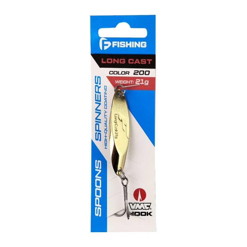 F-FISHING Long Cast – серия колеблющихся блесен типа «Кастмастер», отличающихся более чем демократичной ценой при высоком уровне исполнения. Это идеально сбалансированные приманки, которые характеризуются исключительными полетными качествами, стабильной игрой, способной соблазнить как активного поверхностного хищника на быстром речном течении, так и пассивных обитателей озерных глубин. Long Cast продуктивны при любой проводке: медленно переваливаясь с боку на бок у самого дна, они привлекут щуку, окуня, судака, сома, а резво играя бликами у самой поверхности или в толще воды, соблазнят осторожного жереха. Приманки F-FISHING LongCast оснащаются заводными кольцами и острейшими тройниками VMС, имеют высококачественное покрытие и цветовую гамму, наиболее востребованную у наших хищных и полухищных рыб.