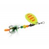 F-FISHING Twidd – вращающиеся блесны, обладающие высокой уловистостью и качеством изготовления. Конструктивно они представляют собой вращающийся на проволочной оси лепесток с сердечником из нескольких разноцветных шариков и мушкой на тройнике. Вес сердечников разных моделей варьируется набором размещенных на их оси шариков различных диаметров. Лепесток имеет классическую округлую форму типа Aglia. Отклоняясь от оси на 40-45 градусов, он отлично заводится с первых оборотов катушки и стабильно работает как на течении, так и в стоячей воде, продолжая свое вращение даже на небольших паузах в проводке. Центр тяжести вертушек Twidd смещен ближе к задней части. Такое конструктивное решение существенно влияет на увеличение дальности и точности заброса. Все блесны Twidd от компании F-FISHING комплектуются заводными кольцами и острейшими тройниками VMC, а видовое разнообразие пойманных с их помощью трофеев лишний раз доказывает универсальность и высокую эффективность этих приманок!