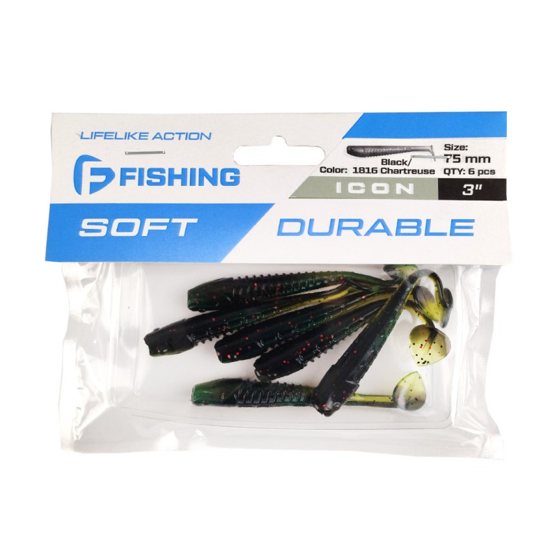 Съедобная мягкая приманка F-Fishing Icon – виброхвост, обладающий активной высокочастотной игрой. Движения хвостового пятака, вопреки ожиданиям, весьма размашисты. Играть приманка начинает на самой медленной проводке. Такая активность обеспечивается тонким хвостовым стеблем, на который посажен пятак. Привлекательный запах и высокочастотная дрожь Icon способны вывести из сонного оцепенения даже самого пассивного хищника. Это прекрасный вариант для ловли рыбы в периоды ее низкой активности, например, в холодное время года.