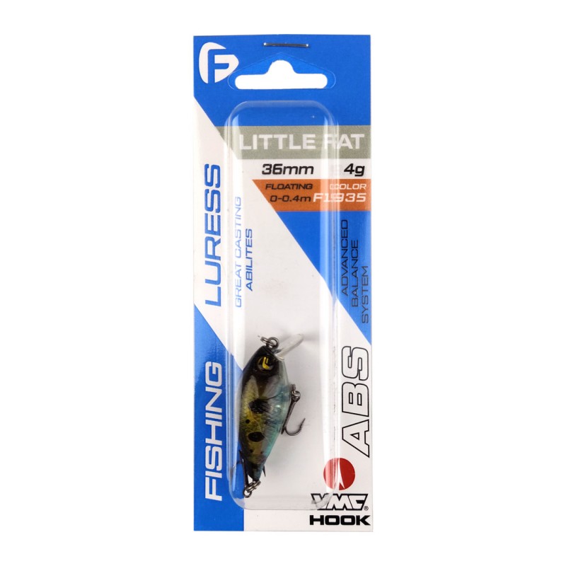 Миниатюрный воблер, который прекрасно подойдет для ловли голавля, язя, жереха, окуня и другой хищной рыбы. В отличие от большинства воблеров Fat, он не обладает сверхинтенсивной игрой. Играет Little Fat SR активно, начинает работать с первых сантиметров проводки, но на повышение скорости не реагирует чрезмерным увеличением амплитуды и частоты, что позволяет использовать воблер как в стоячей воде, так и на достаточно сильном течении. Игра представляет собой мелкую дрожь со средней, как для этого класса воблеров, амплитудой. Это отличная приманка не только для дневной, но и для ночной ловли. Воблер оборудован шумовой капсулой, что повышает его заметность.